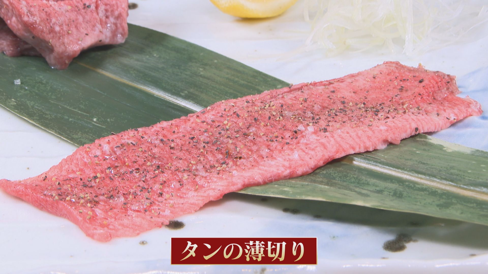 それぞれの部位に合わせた「切り方」にもこだわりがあるご主人。 タンは縦に薄切りで味わうのがオススメとのこと。 サクサク食感が楽しめます。