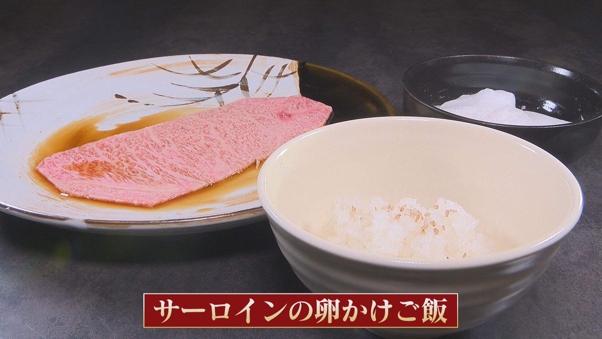 最高級のサーロインをなんと卵かけご飯で! 上質な脂とまろやかな卵が合わさって、さっぱりいただけますよ。