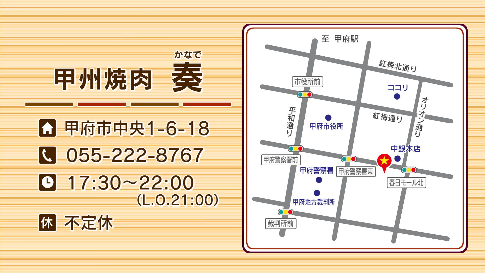 中銀本店の向かいにオープンして10年。 年間500頭しか市場に出回らない、希少な甲州牛が味わえると人気のお店です。