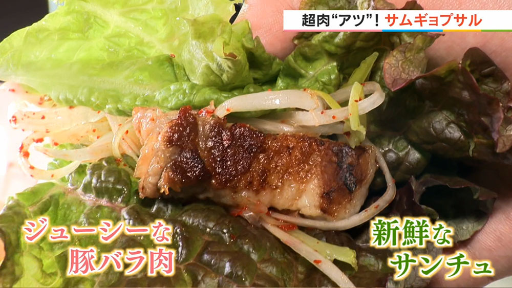 新鮮なサンチュや自家製キムチと合わせて、自分好みの食べ方を楽しめます。