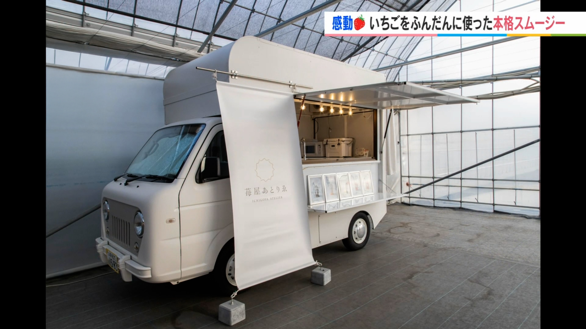 ハウス内にはキッチンカーがあり、『いちごのスムージー』がいただけます。