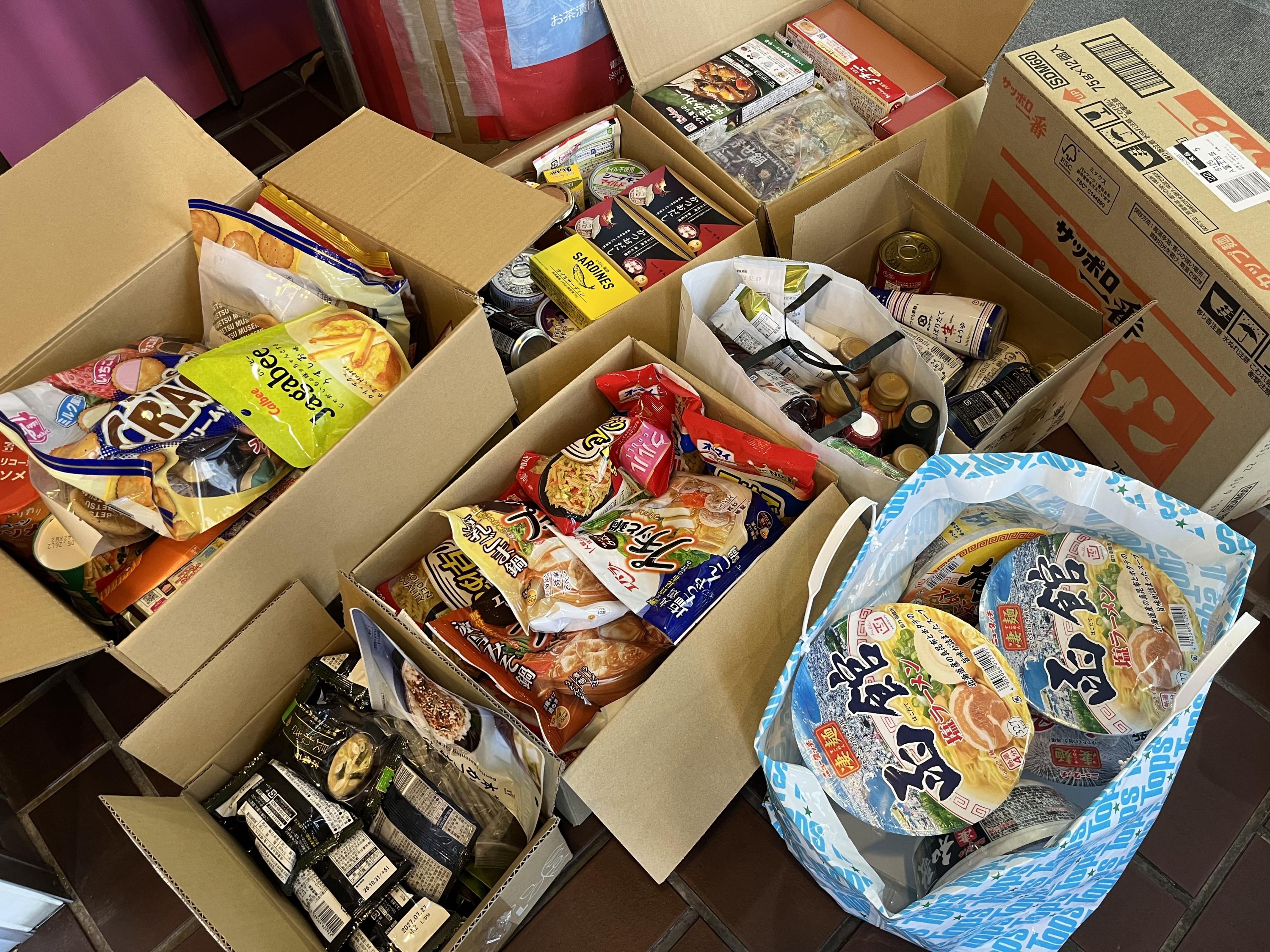 本日、3月に実施したフードドライブ強化週間中に集まった食品を