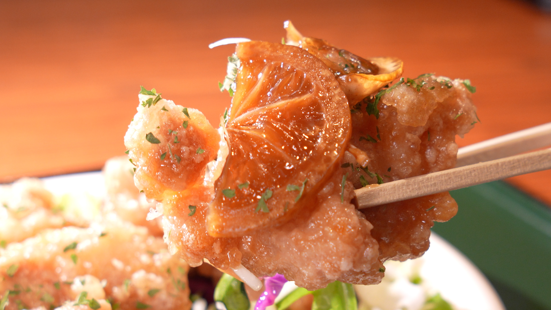中学生時代に給食で出た味を、友人の希望でリメイク 揚げたての鶏唐揚げをレモンたっぷりのつけだれにくぐらせて仕上げる一品 レモンの風味でさっぱり! ご飯が進みクセになる味わいです
