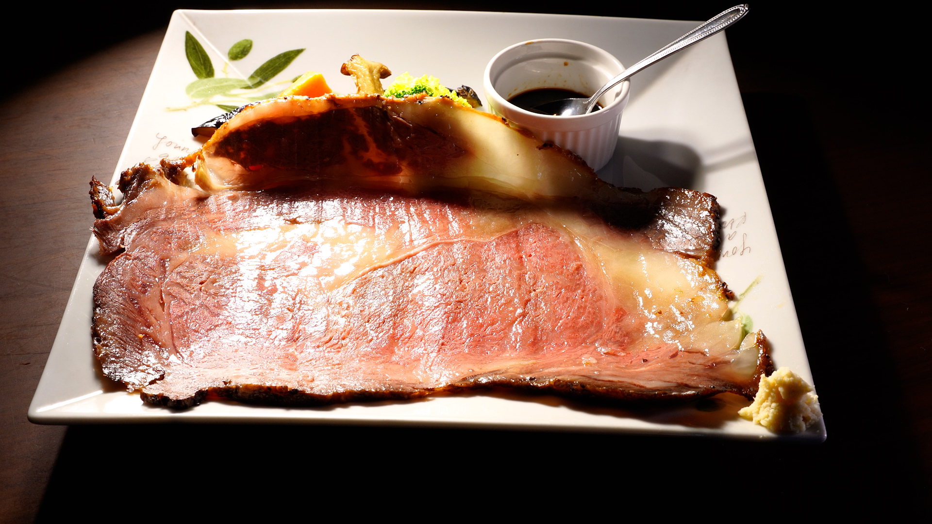 薪火で10時間ローストしたローストビーフ! 薪の風味も感じられ、しっとりとやわらかい贅沢なメイン料理 大きさに驚きます!