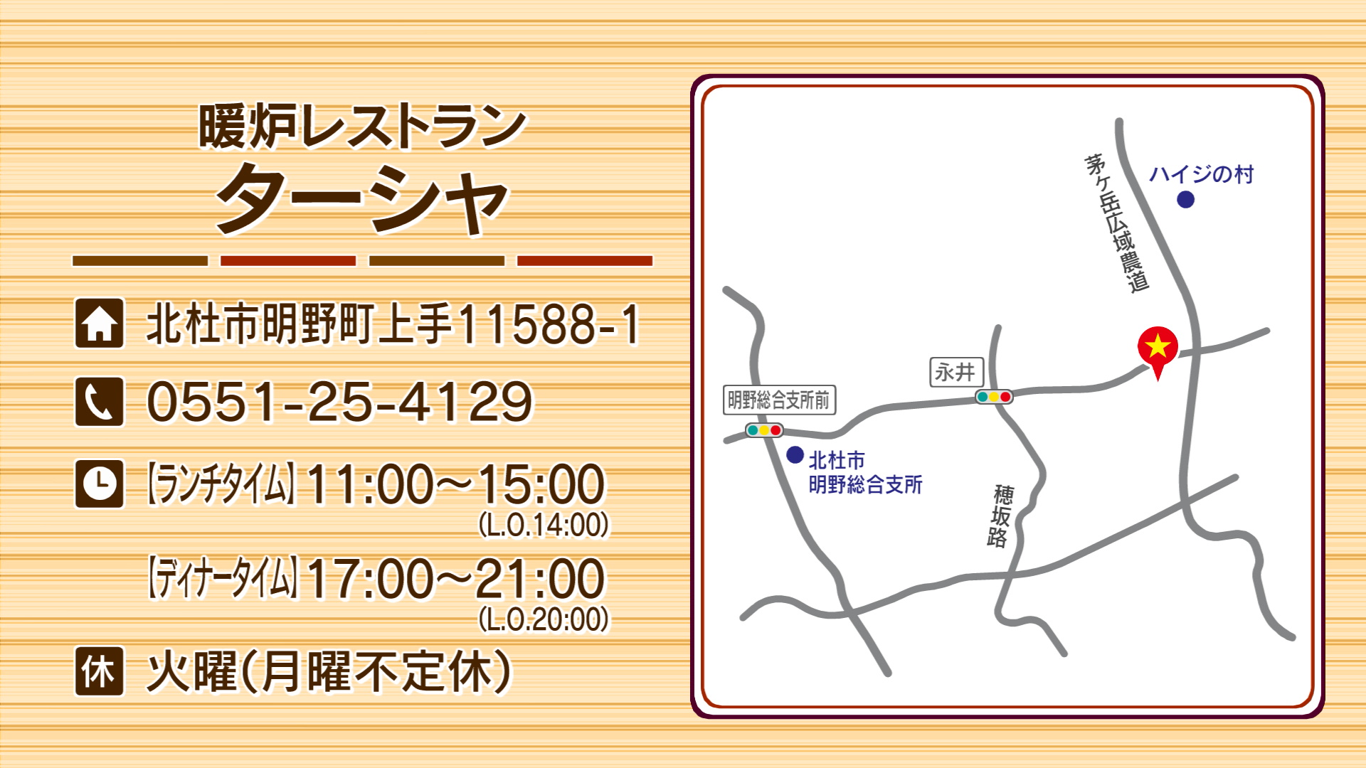 茅ヶ岳広域農道を韮崎方面からハイジの村方面に向かって左手に看板がございます