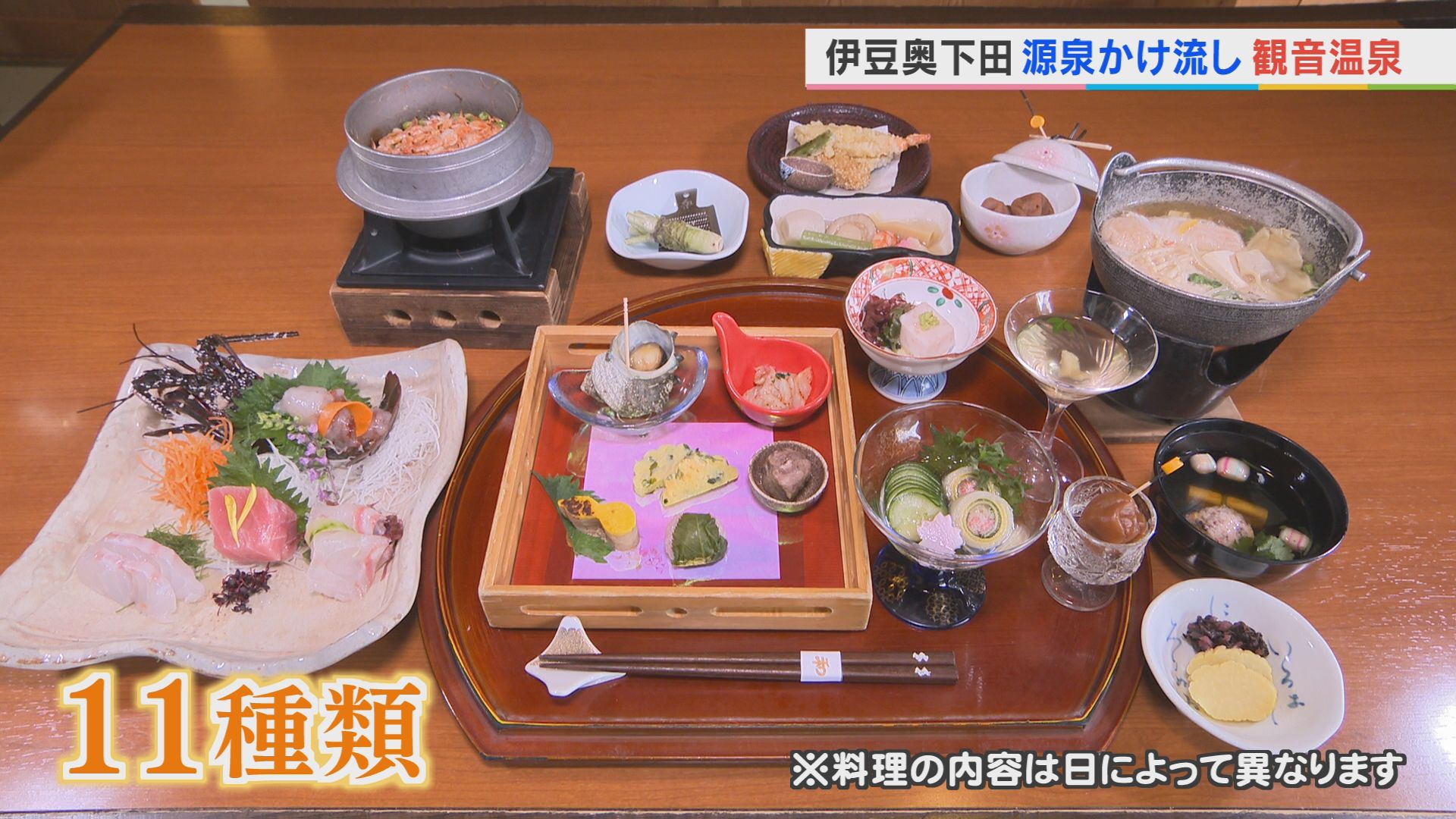 下田近海でとれたお魚はもちろん、地のものを中心に11種類。最高です!