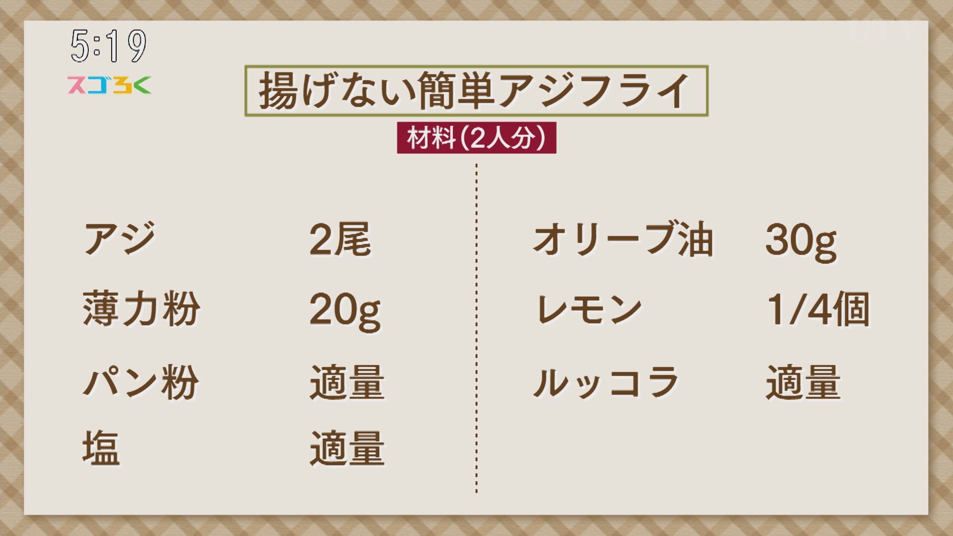 お手軽簡単!なのに美味しいレシピを紹介するじゃんぶるレシピ! 今回はリストランテkoenシェフ小池陵太さんに 『揚げない簡単アジフライ』を教えていただきます。 じゃんぶるレシピでは、出ていただく料理の先生全員に特別なテーマがあります!小池さんのレシピのテーマはアンダー8!何と小池さんはどんな料理でも塩こしょうを除いて8種類までの食材や調味料しか使えません!