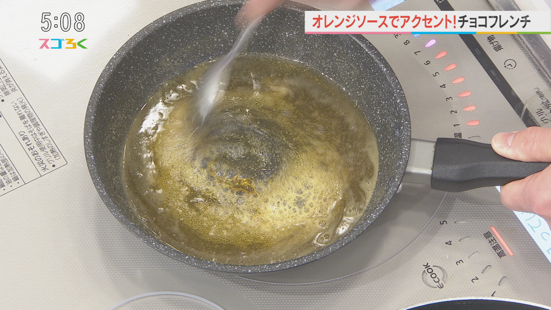 ・漬け込み液にバゲットを浸して軽く揉む ・カラメルができたらオレンジジュースを少しずつ入れ加熱しながら飴をのばす ⇒ソースができたら氷水を張ったバットに鍋ごと入れ冷やしておく