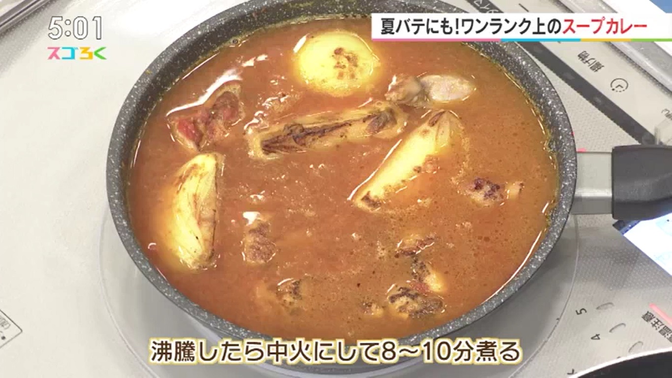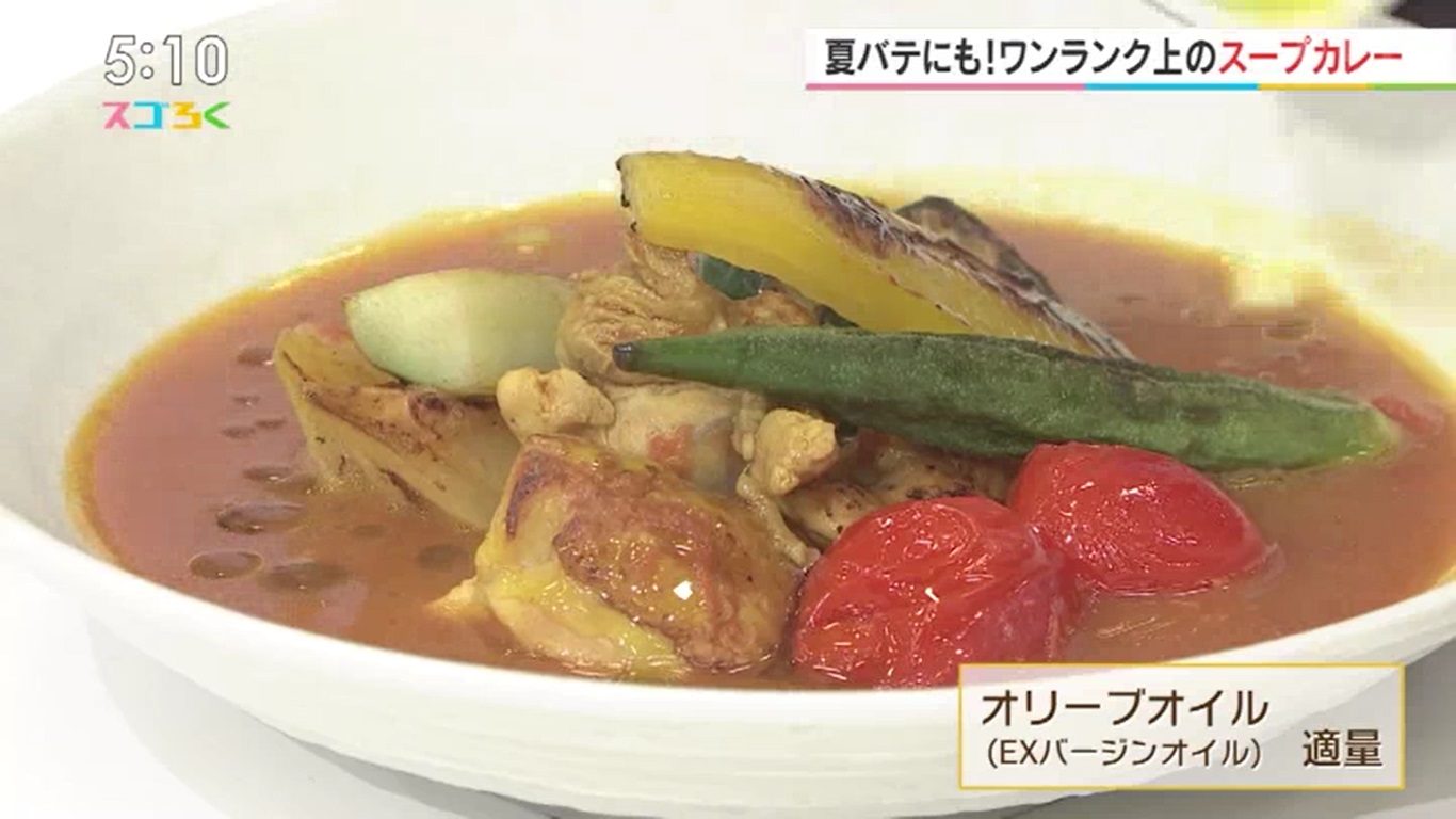 ポイントを押さえて 簡単&絶品に仕上がるレシピを毎回教えてくれる 人気店リストランテコエンのシェフ・小池陵太先生に聞きました♪ 暑さにバテぎみの時でも サラサラ食べられる、酸味とうま味たっぷりのスープカレー♪ しかも煮込み時間はたったの10分! 煮込んでいる間に野菜を焼いて飾り付ければ、 見た目も栄養面も大満足なヒトサラに♪