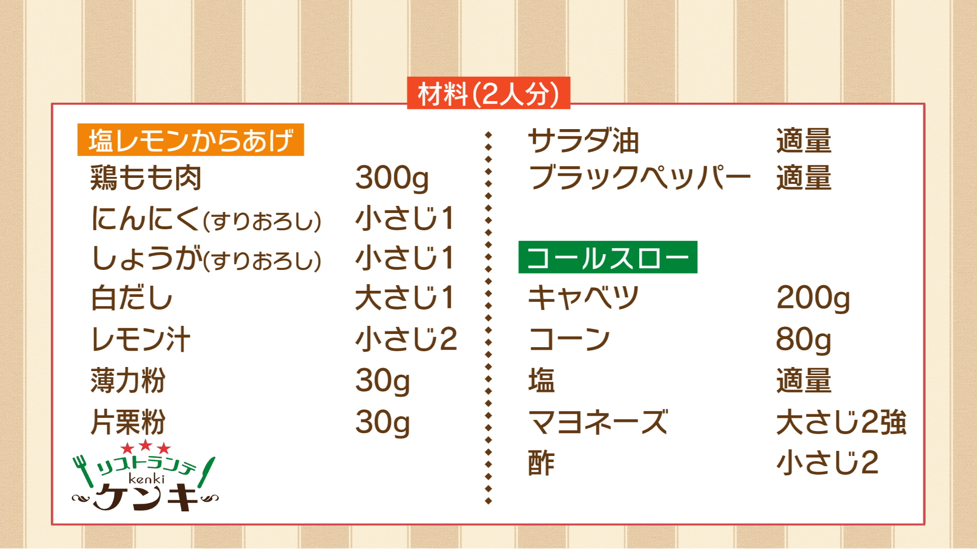 リストランテkoenのシェフ・小池陵太さんに サッパリジューシー! 塩レモンから揚げとコールスローを 教えていただきました。