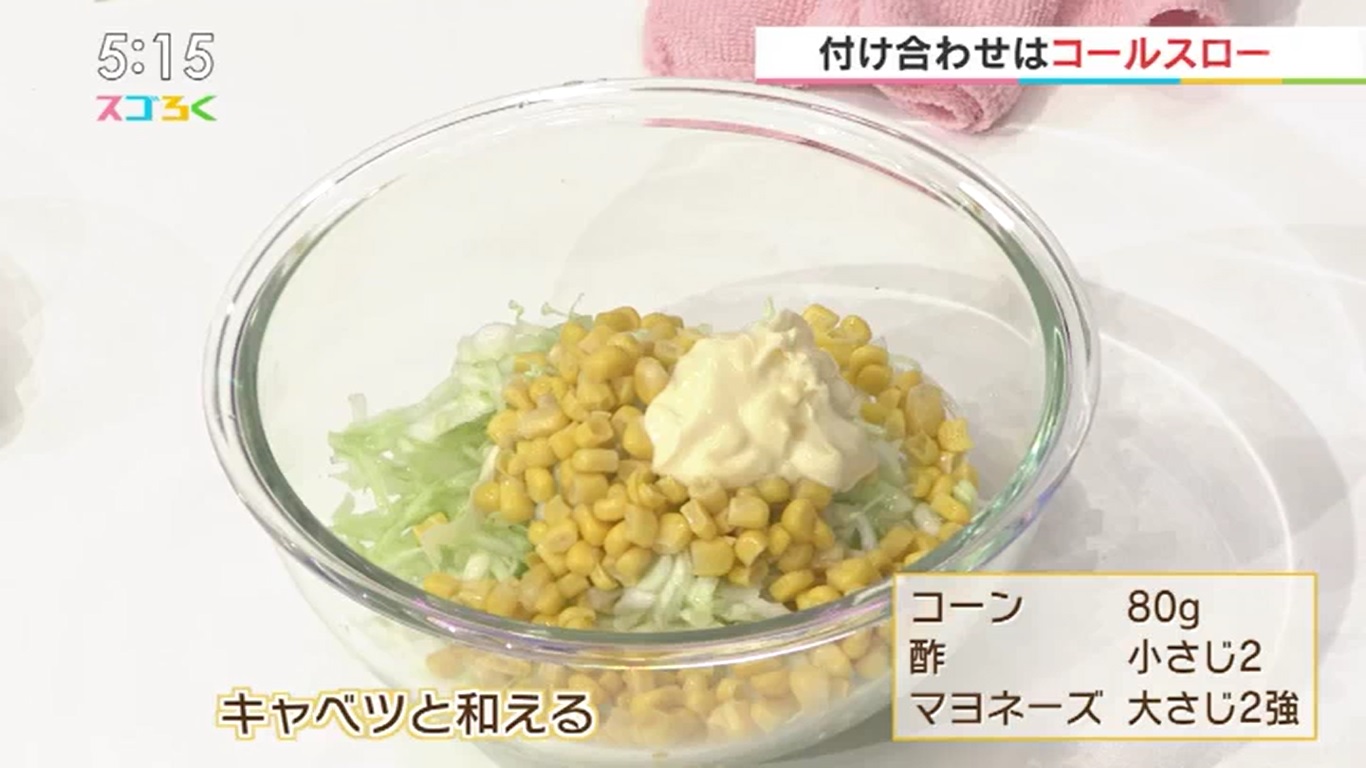 ・キャベツをできるだけ細かく千切りにする ・塩をふって水分を抜く ・マヨネーズ、コーン、酢とあえて完成 簡単にササッとできるので覚えておくと便利!