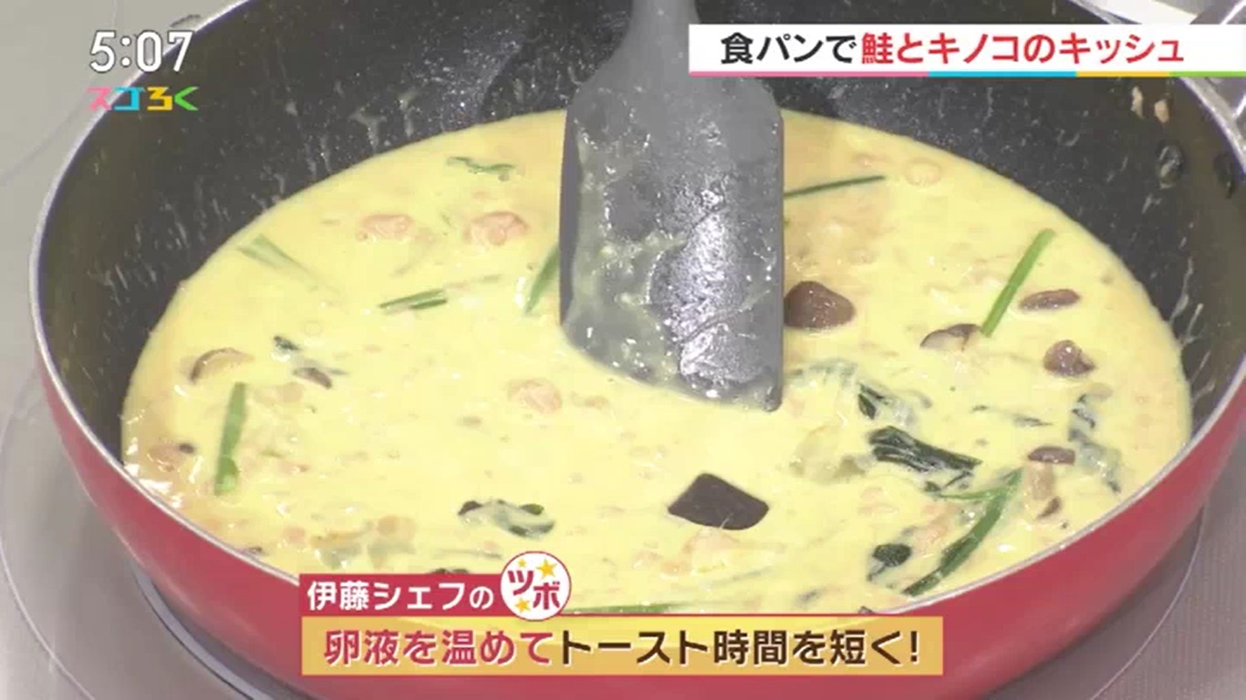 コーナーポケットの伊藤博文さんに 『鮭とキノコのキッシュ』を教えていただきました! オシャレ料理のキッシュは 手間のかかるイメージもありますが 今回は食パンをつかって簡単に作れるレシピです