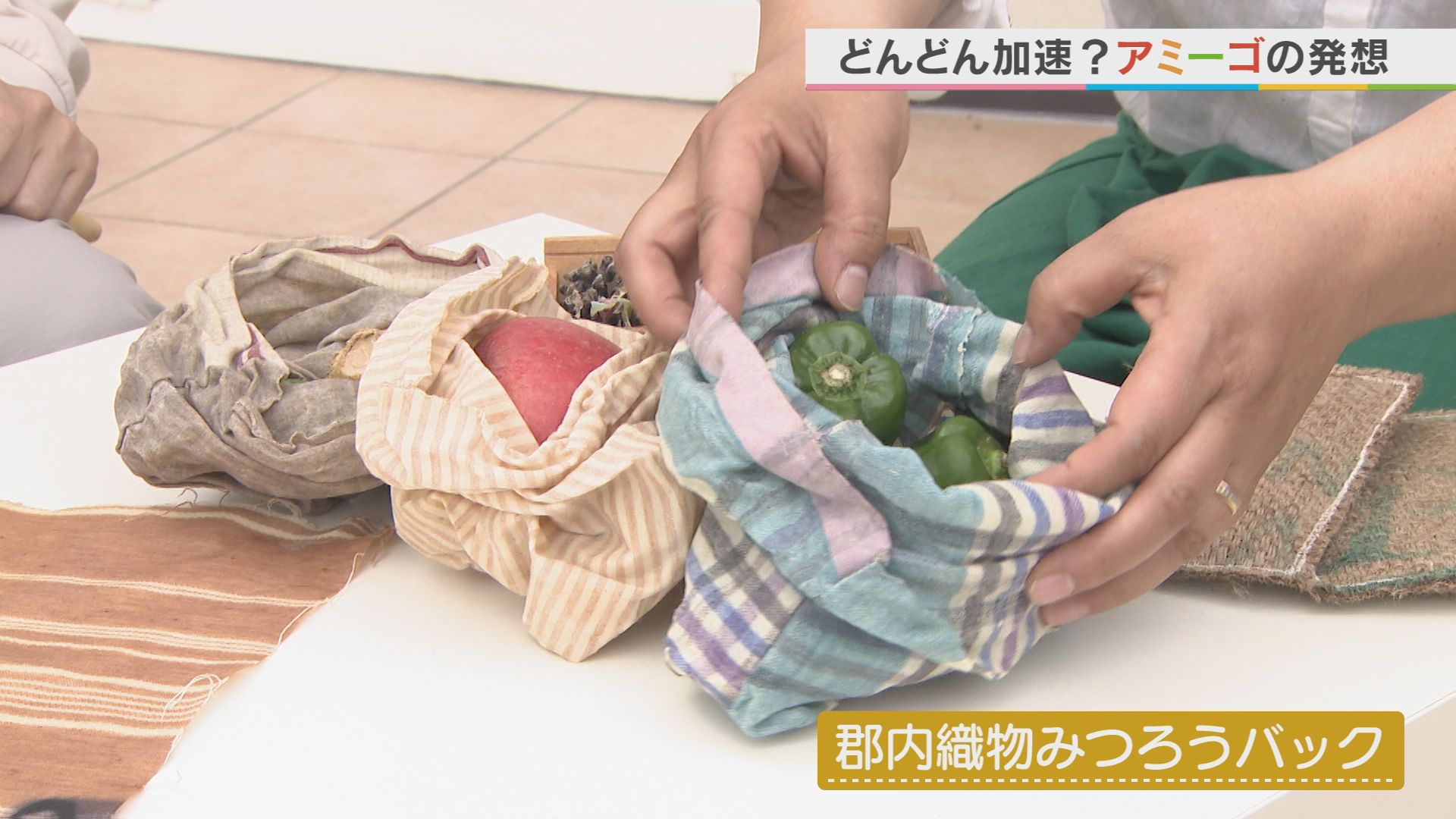 1年半ほど前、テレビで繰り返し使える 布製ラップ「みつろうラップ」を知り、 ひらめいたのが「郡内織物で作ったら 絶対ステキになる!」ということ。 機織り会社に知り合いはいませんでしたが とりあえず試作。インスタにあげると… 商品のオファーが‼ そこからはトントン拍子で商品が広まり、 現在は、富士吉田市の ふるさと納税返礼品になるほど 人気になったのです。