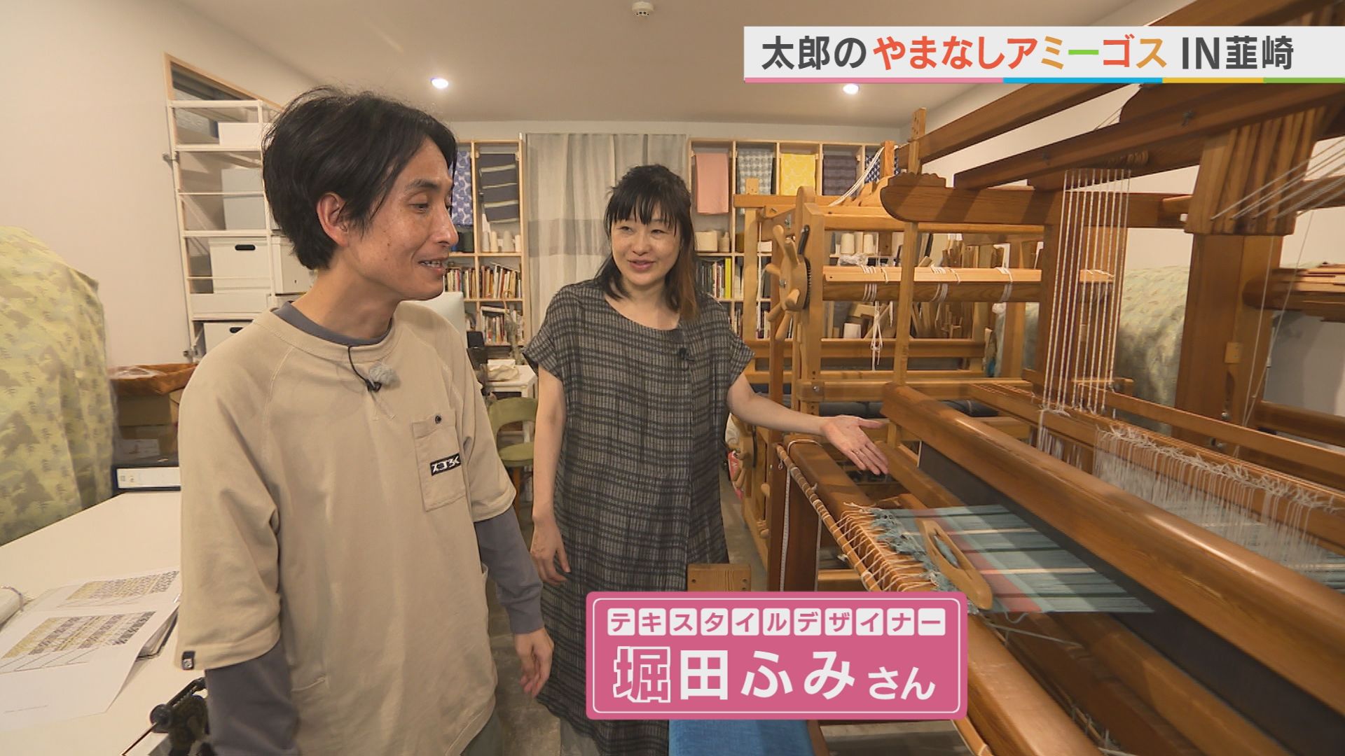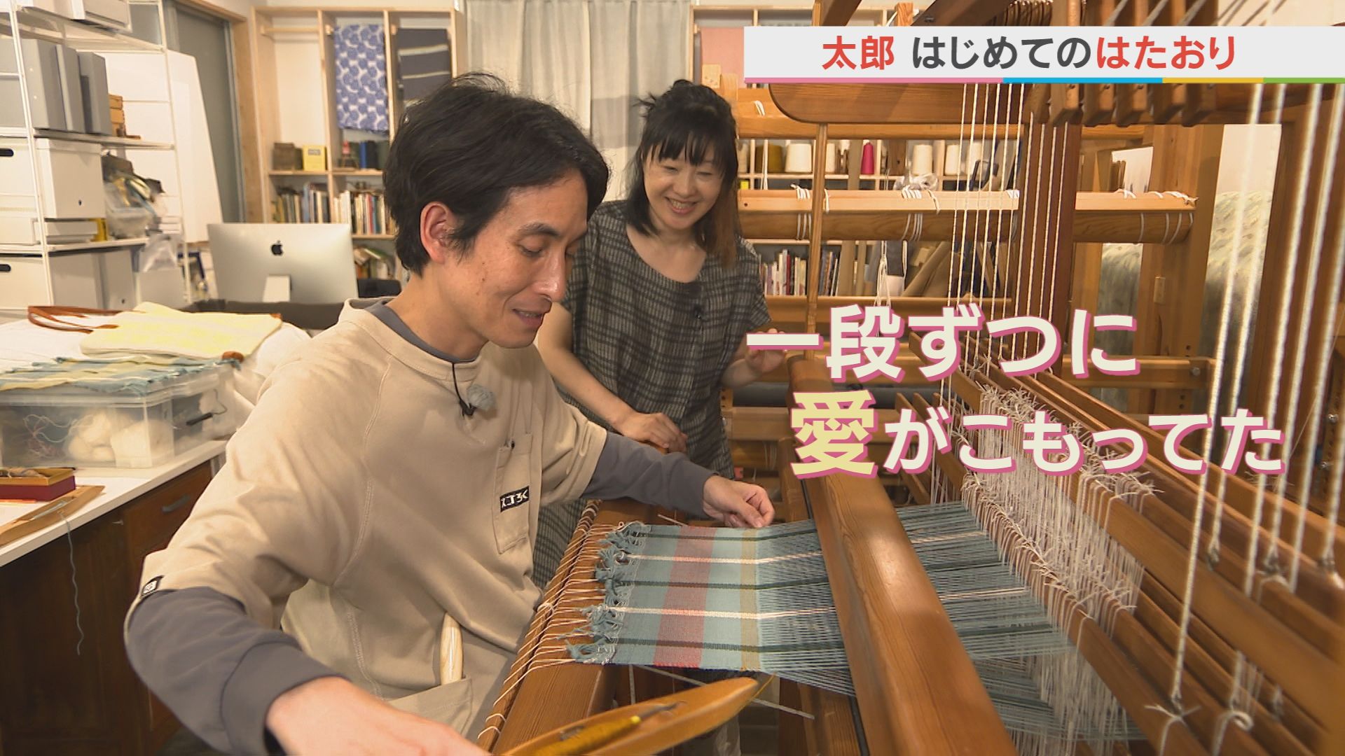 矢部さんのお母さんの趣味は なんと「機織り」! 実家には、手織り機があるんだとか。 お母さんが織った布が次から次へと 送られ、自宅は布だらけ。 堀田さんの工房にあるスウェーデン製の 大きな手織り機を体験すると… その楽しさに母の気持ちが少し 理解できたみたいです。