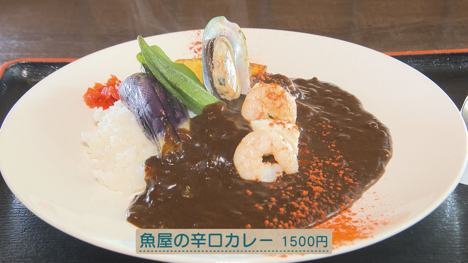 程よい辛さのルーに、ムニエルにした大ぶりの海鮮がマッチした一品。
