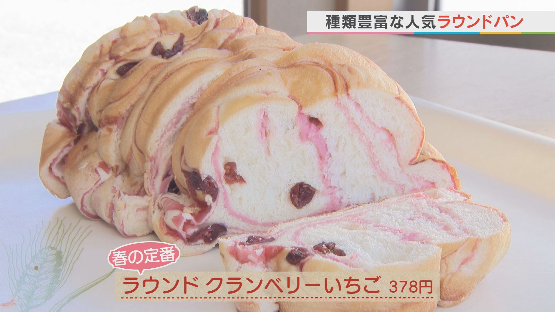 そして、お客さんが必ずと言っていいほど 買っていくのが種類豊富な 「ラウンドパン」です。 春の期間限定商品は イチゴの甘みとクランベリーの酸味が ベストマッチのふわふわな焼き上がり。 初夏には、甘夏のオレンジ色の ラウンドパンになるそうですよ♪