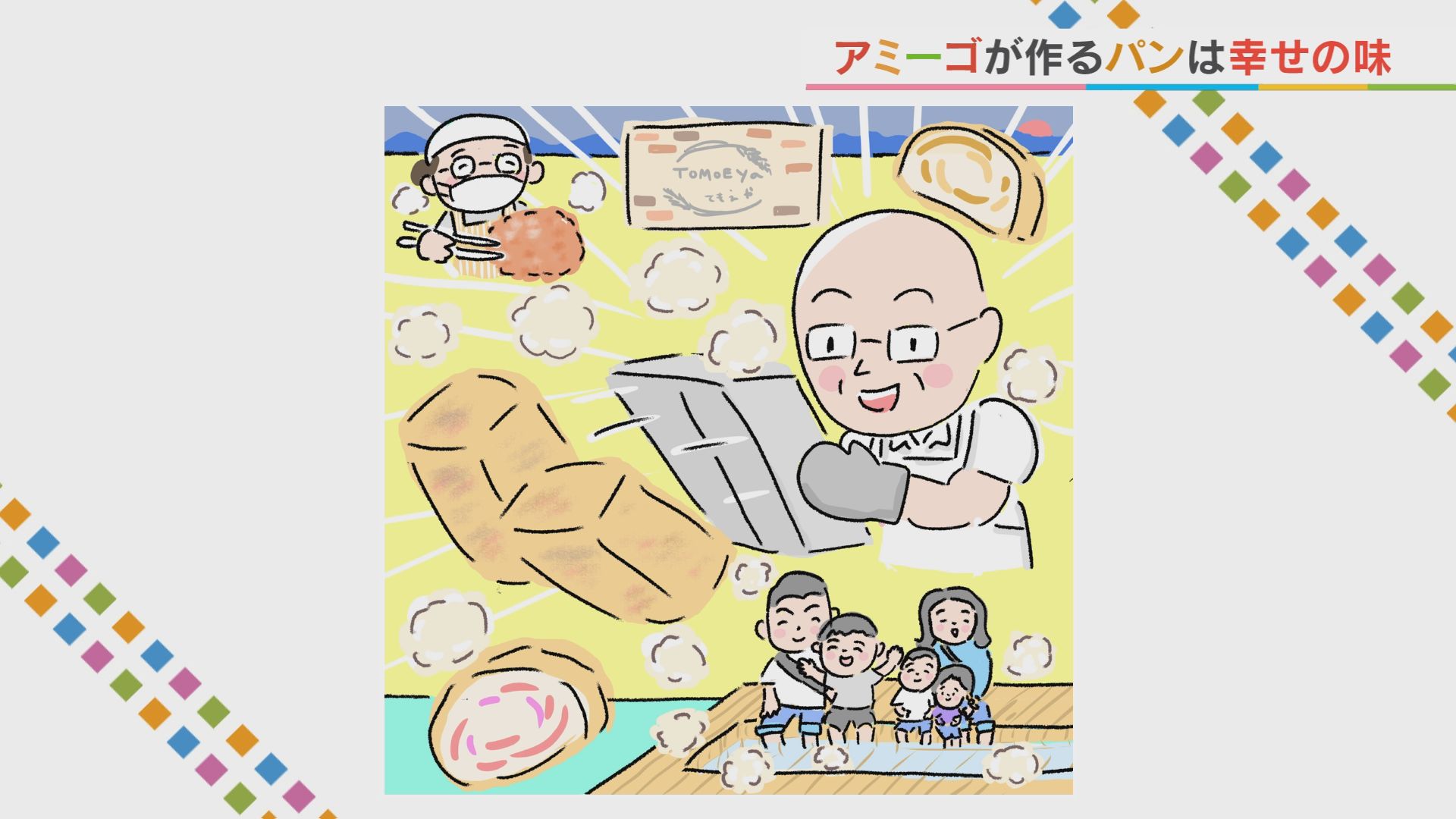 朝3時から休みなく 美味しいパンを焼き続け お客さんのために作り続ける 「ともえや」さん。 ポイントは 「朝日よりも早く輝く寺本さん」 です! 矢部太郎