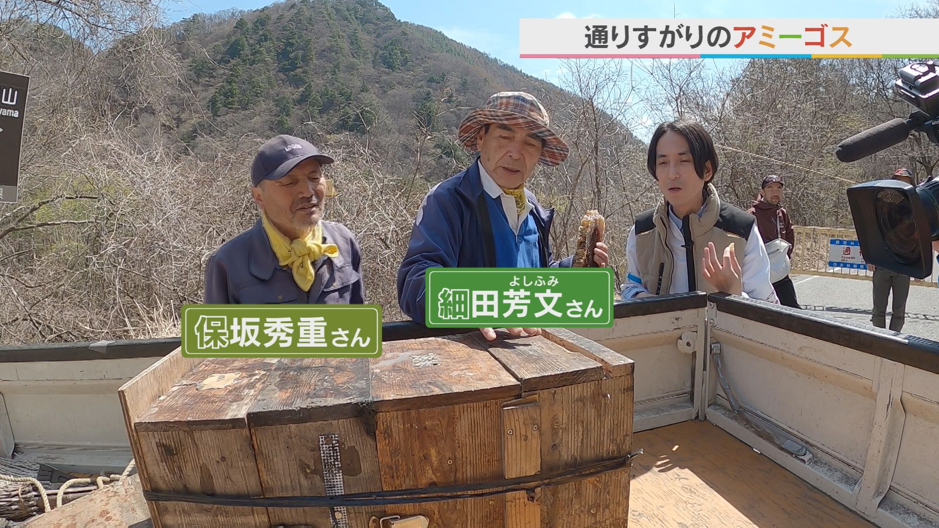 ロケ中に偶然出会ったのは 趣味の養蜂帰りの細田さんと保坂さん 美味しいはちみつを分けてくれました ごちそうさまでした