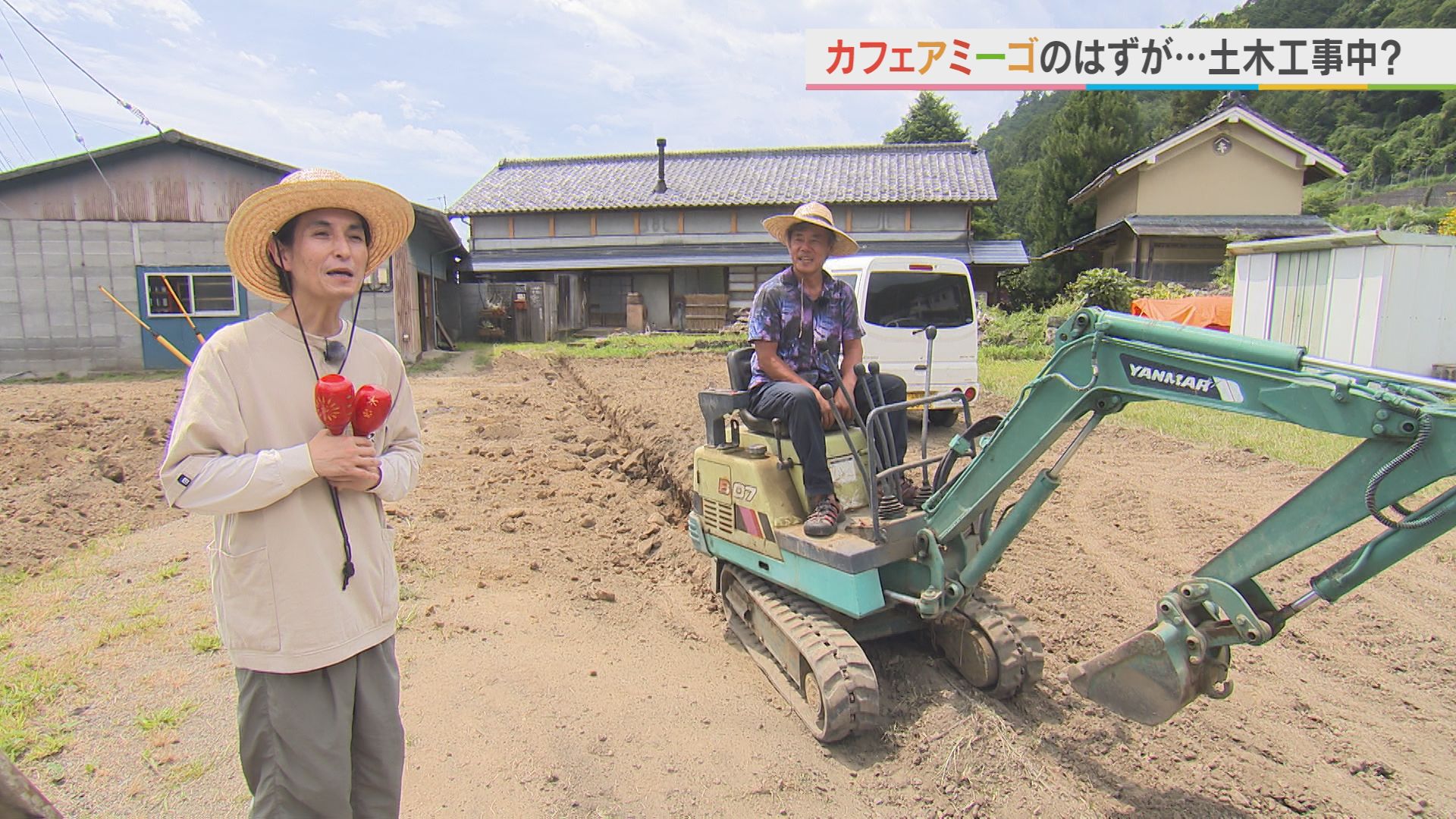 訪ねたのは 南アルプス市の高台 中野地区にある古民家カフェ 『月晴れる』の渋谷英雄さん。 小さなユンボに乗って工事中? 土木作業から農作業 なんでも出来る渋谷さんの本業は 市内のワイナリー「ドメーヌヒデ」の ワイン醸造家なんです!