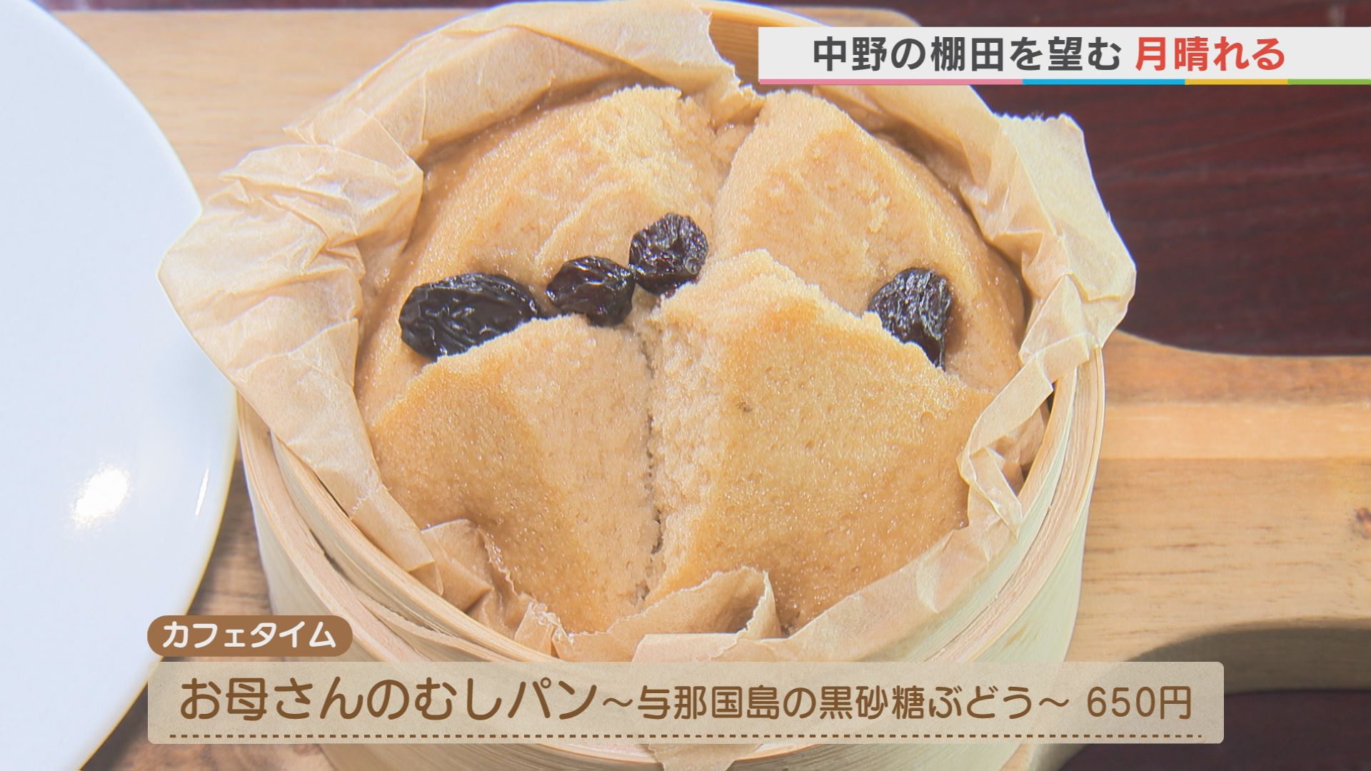 カフェタイムで味わえるのが 棚田米の米粉を使った蒸しパン。 渋谷さんのお母さんが 好きだったという 黒糖に干しブドウをのせた 素朴な味わい。 モチモチとした食感が たまりません!