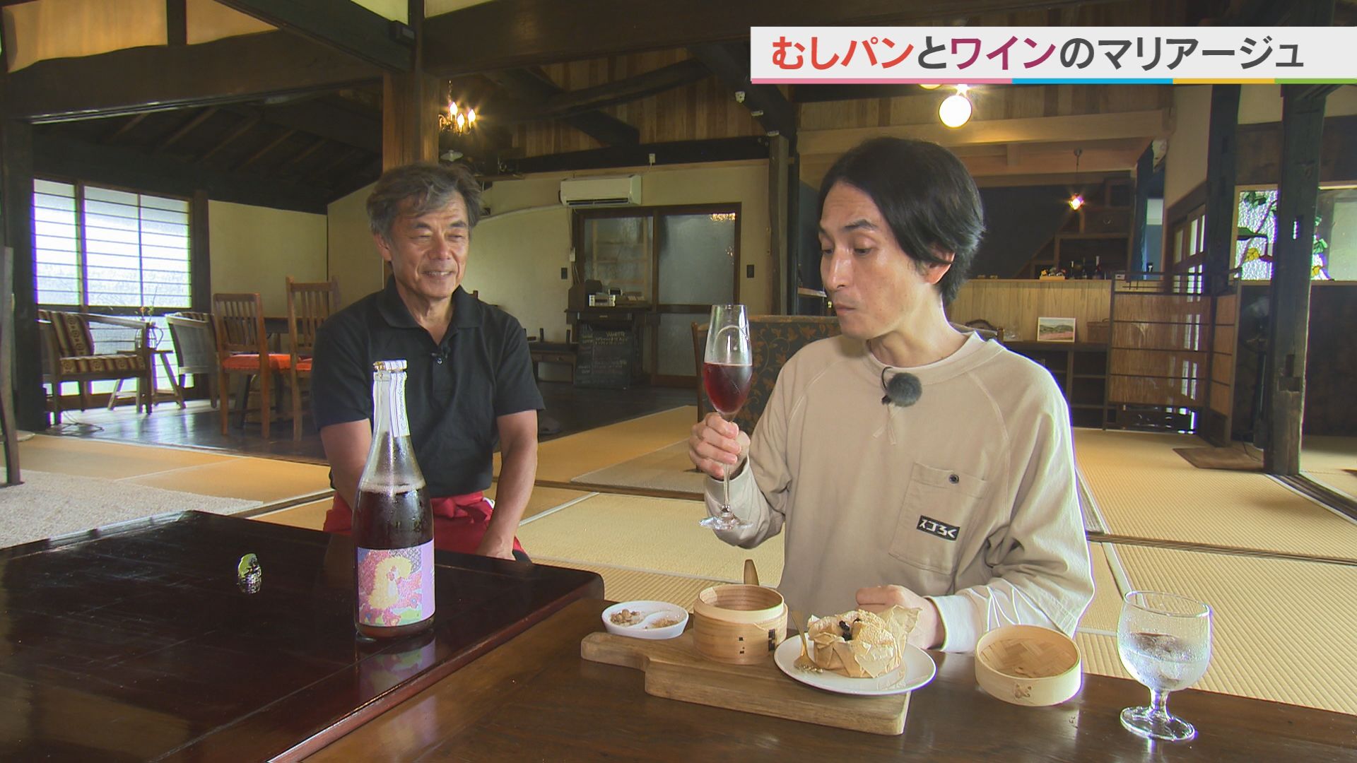 黒糖や餡子に合うという 渋谷さんが造ったワイン 「ラピュータ スパークリング」と一緒に。 花の香りの華やかな ロゼスパークリングに 矢部さんも ほろ酔い気分に。 夏の棚田の風景を眺めながら 至福な夏休み気分になりました。