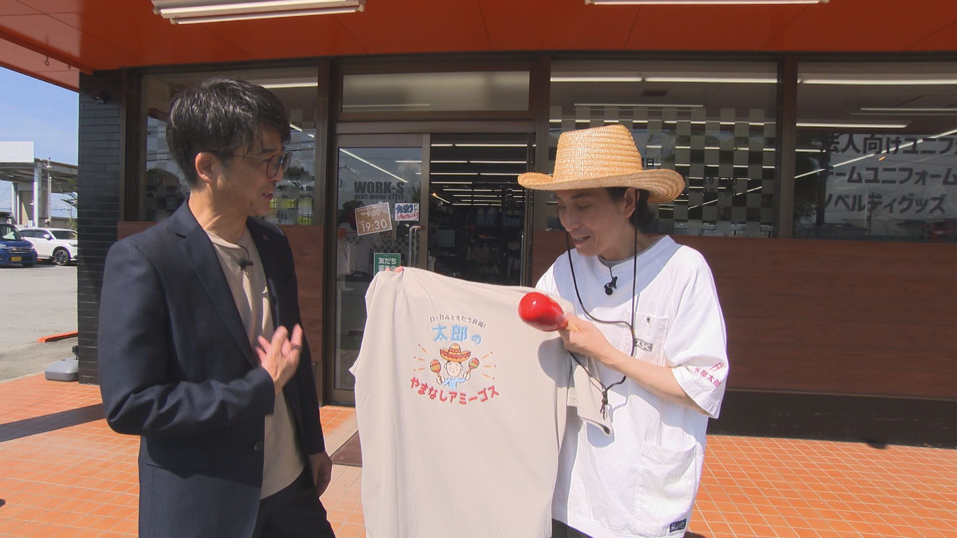 今回の舞台は笛吹市。 矢部さん、2人のアミーゴの元へ。 まず1人目のアミーゴは、山梨ユニフォーム(株)の田中さん。 矢部さんがいつもロケで着用している「アミーゴスTシャツ」を制作してくださった方とアミーゴの輪でつながりました。