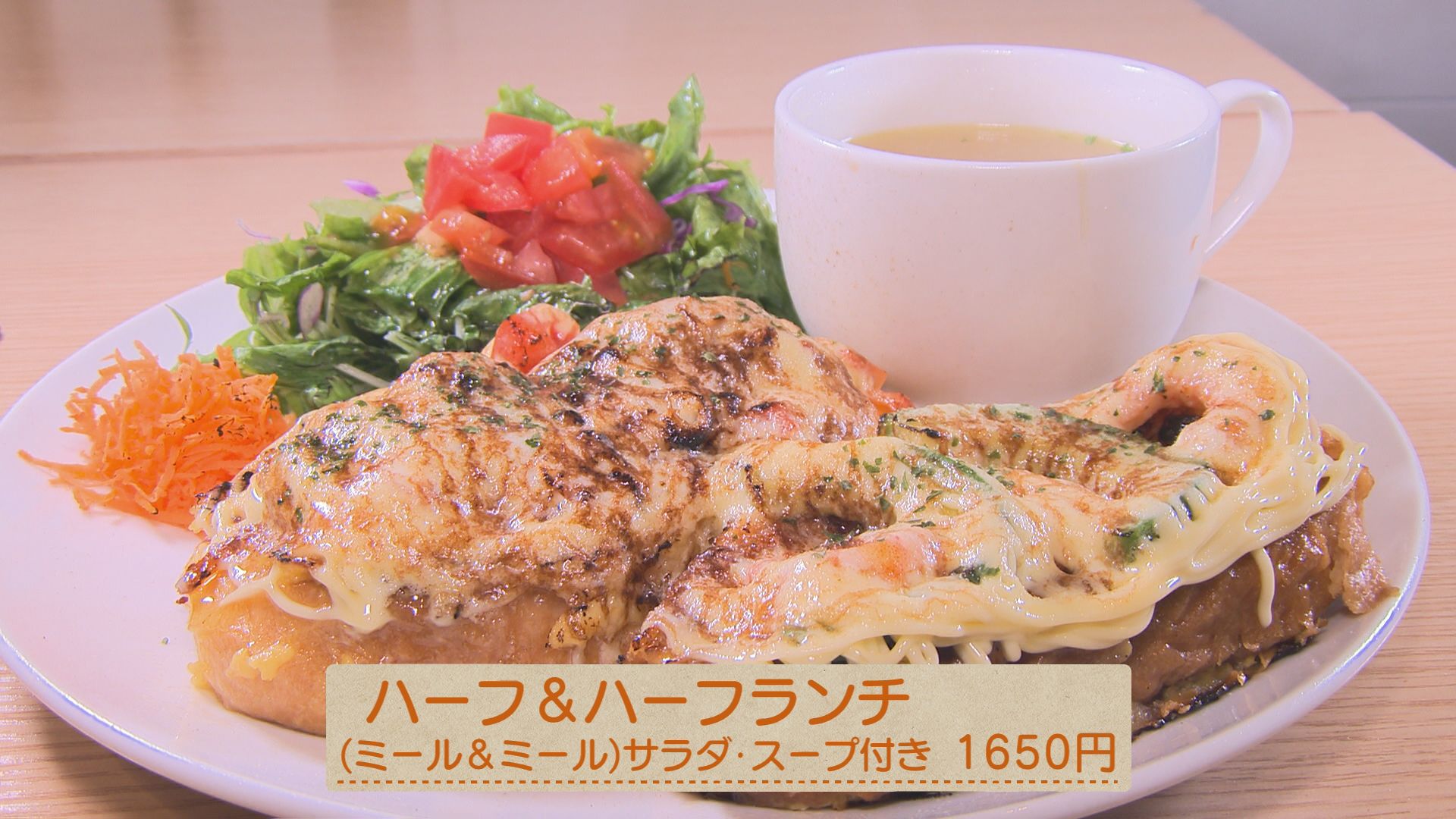 ランチメニューでは、こちらの「ハーフ&ハーフ」がオススメ。 食事系のフレンチトースト2種類を選んで楽しむことができます! ふわふわで甘じょっぱい味わいがクセになる、一口食べればフレンチトーストの概念が変わること間違いなし!